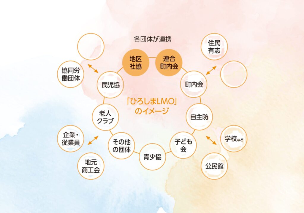 市は、持続可能な地域コミュニティの実現に向け、「広島市地域コミュニティ活性化ビジョン」に基づき、「ひろしまLMO」の設立・運営支援を行っています。